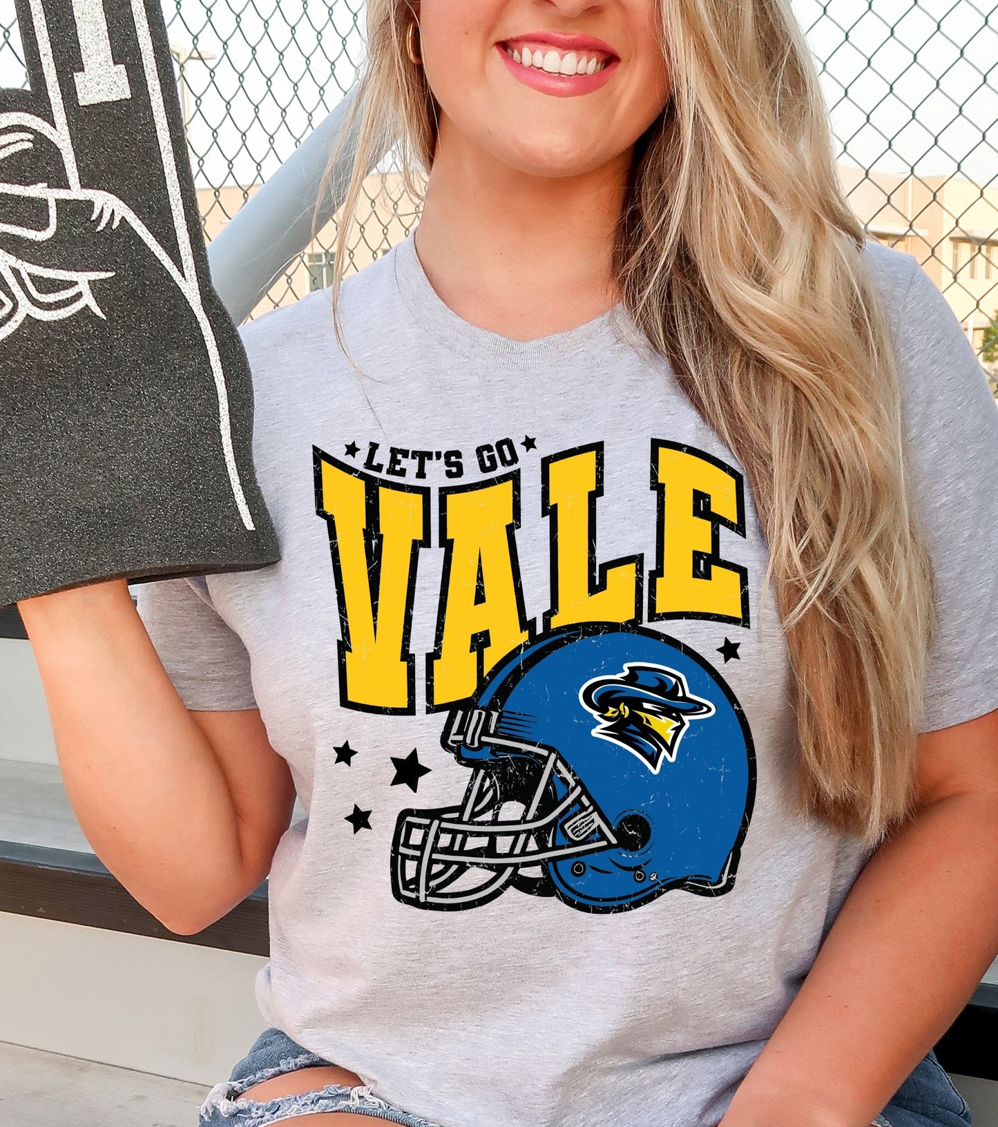 Get ready to cheer in style with our Let's Go Vale Football tee! This soft, athletic gray unisex shirt combines comfort and team spirit, perfect for game day or casual hangouts. Its cozy fabric keeps you comfy while you root for your favorite team—because winning starts with feeling great!